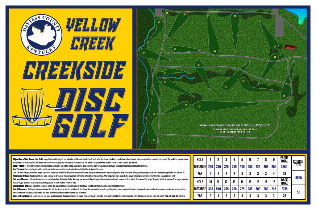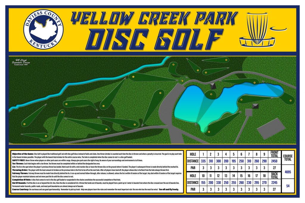 Yellow Creek Creekside – original 9 holes (17-27 on OG) designed by HB Clark PDGA#553 in 2008.