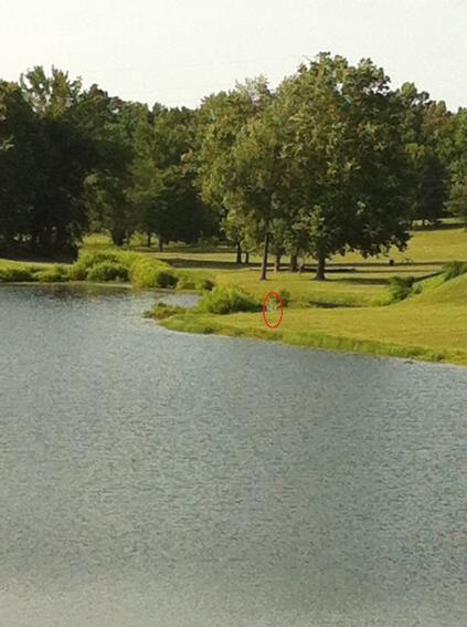 Hole 14 looking from Championship Tee on top of dam (610 feet) |
