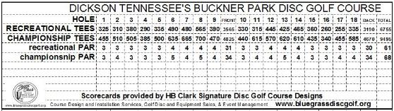 CITY OF DICKSON DISC GOLF COURSE AT J. DAN BUCKNER PARK DICKSON, TENNESSEE |