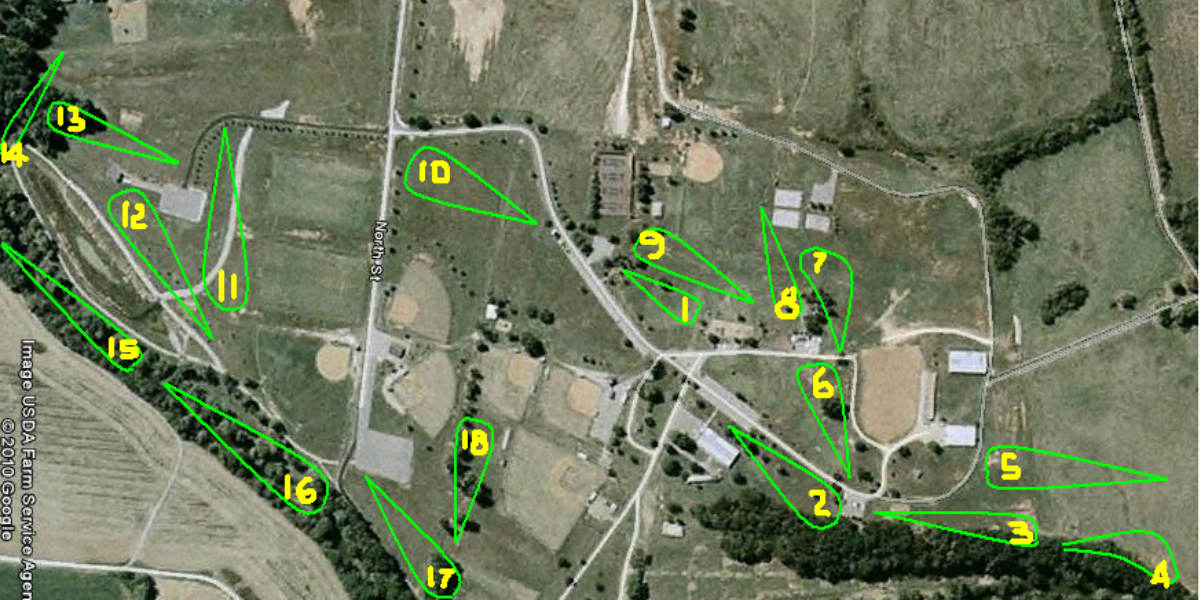 FRANKLIN SIMPSON PARK DISC GOLF COURSE Established 2005. Designed by HB Clark, PDGA # 553 On or beyond any pavement or noted walking trail is Out of Bounds In Creek surrounded by water is OB Some rock erosion areas are OB as noted Top of the bank of the creek on hole 14-15-16 No 2- meter rule on this course NOTE: PAINTED OUT OF BOUND LINES SUPERSEED LISTED OB (ALONG THE RIVER THE TOP OFTHE BANK IS THE OB LINE) Short Long Hole 1 245 290 Road to right and playground (and black border) long OB Hole 2 400 495 Road to left, parking lot long, and shelter long OB. White fence NOT OB Hole 3 490 553 Road to left and in river OB Hole 4 275 345 In river OB Hole 5 500 750 Over horse rink fence OB, road long OB Hole 6 380 440 Played as Island hole, tee shot must clear white fence or go to drop zone (just through gap in the fence) with penalty. White fence to right of drop zone, and paved road long OB Hole 7 290 370 On ball paved ball courts OB, in shelter OB, over white fence to right OB Hole 8 280 395 In shelter, in playground (and black border), or or over road and parking lot long OB Hole 9 325 450 Parking lot long, or over fence to right OB Hole 10 360 400 Road to right and long, gravel parking lot OB Hole 11 420 480 In rock area OB, on paved parking lot, on or over road long are OB Hole 12 460 625 In rock area ahead or beyond rocks on left OB, long tee must clear road and stay left of road or re-tee with penalty. On parking lot, on paved sidewalk, or on pavilion concrete OB above the basket. Hole 13 340 475 In shelter or on sidewalk to left OB Hole 14 265 345 In creek (note painted lines) OB. Over bank right of hole beyond end of paint is OB. Gravel path to left is NOT OB. Hole 15 360 520 Creek (note painted lines) to right OB. Gravel path to left is NOT OB. Hole 16 425 580 Creek to right (note painted lines) and paved road left and beyond is OB. Fence way long is NOT OB. Hole 17 315 425 Road to right, parking lot to left OB Hole 18 235 370 Over any ball fence or in batting cage OB |