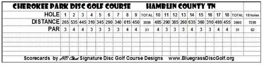 | Cherokee Park Disc Golf Course Morristown, Tennessee |