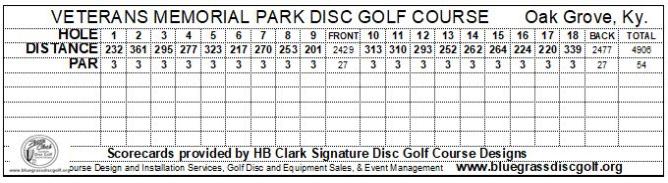 | War Memorial Park Disc Golf Course For All Who Served Our Country Oak Grove, Kentucky |