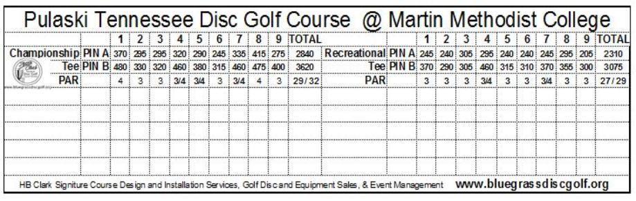 | RedHawk Disc Golf Course Martin MethodistCollege Pulaski, TN |