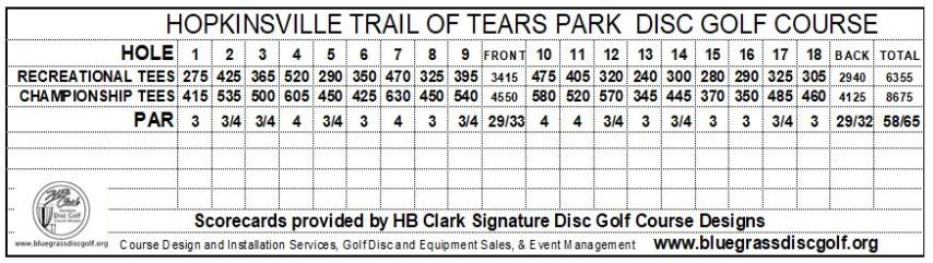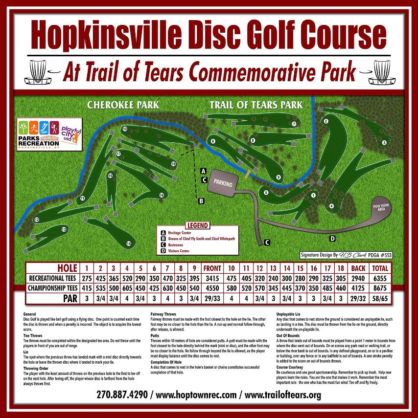 | HOPKINSVILLE DISC GOLF COURSE @ TRAIL OF TEARS PARK HOPKINSVILLE, KY |