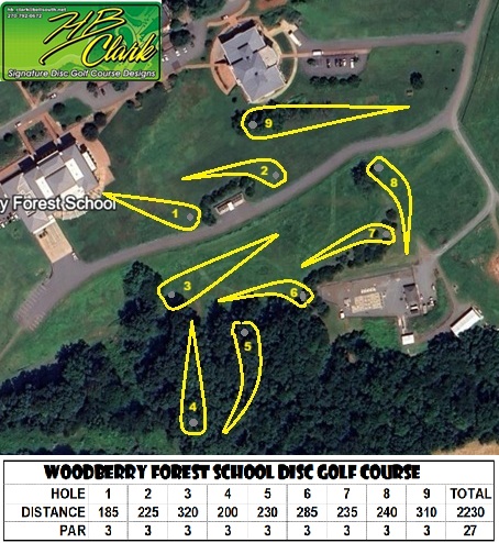 Ninth hole is long, open, slightly uphill with the pin in a line of mature trees below the science hall. A short walk across the event lawn back to hole one.